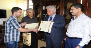 دمشق-سانا كرمت جامعة دمشق اليوم اثنين من ذوي طلابها الذين ارتقوا في سبيل الوطن ومنحتهم شهادات تخرج فخرية ومكافآت مالية. رئيس جامعة دمشق الدكتور محمد حسان الكردي أكد في كلمة له حرص الجامعة على تكريم أسر شهدائها من أساتذة وطلاب …