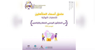 المزيدملحق بأسماء المتأهلين للتصفيات النهائية للماراثون البرمجي للصغار واليافعين