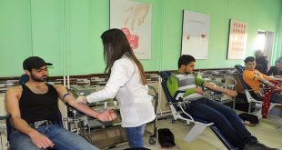 طلاب جامعة دمشق يتبرعون بالدم وفاء ودعما لجرحى الجيش