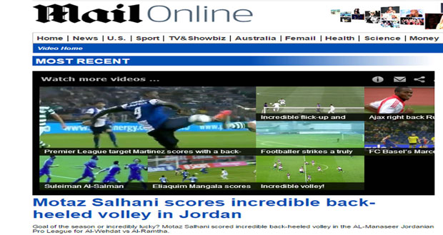 ديلي ميل البريطانية تختار هدف السوري معتز صالحاني ضمن أفضل عشرة أهداف لعام 2014-فيديو 2014-12-27 المزيد