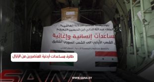 وصول طائرة أردنية إلى مطار دمشق محملة بالمساعدات لمتضرري الزلزال
