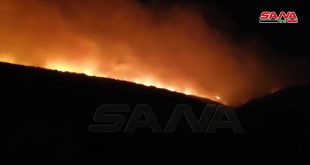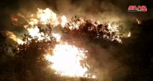 تجدد الحرائق في بلدة الزويتينة بريف حمص الغربي وفرق الإطفاء والأهالي يحاولون إخمادها
