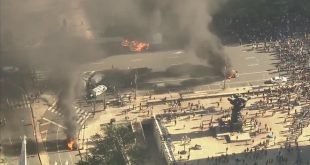 المتظاهرون يضرمون النار في سيارات الشرطة الأمريكية في فيلادلفيا احتجاجاً على عنصريتها