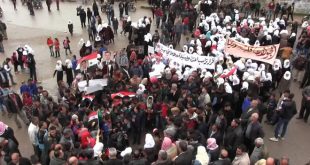 وقفة احتجاجية لأهالي الغوطة الشرقية تنديدا بإعلان ترامب حول الجولان المحتل
