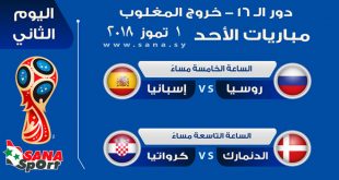 إسبانيا وكرواتيا في مواجهة روسيا والدنمارك في دور الـ16 لمونديال روسيا