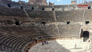Tourist groups on a visit to the ruins of Busra al-Sham3