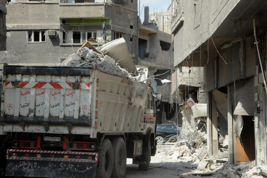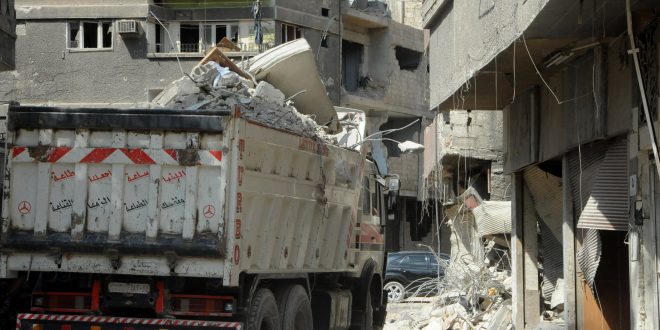 Work continued to remove rubble from al-Yarmouk Camp