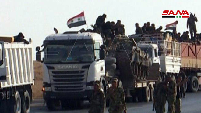 SANA’s reporter said several military vehicles and soldiers from the Syrian Arab Army were mobilized in several directions in the countryside of Raqqa and Hasaka province to fortify their positions in the areas in which they were deployed during the past few days.