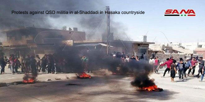 Civil sources told SANA reporter in Hasaka southern countryside that QSD militia launched raids campaign in al-Shaddadi city and kidnapped a number of youths, taking them into training camps of so- called “Self-Defense Duty “to forcibly recruiting them in the ranks of those militias.