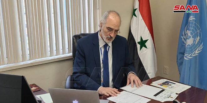 New York, SANA- Syria’s permanent representative to the UN, Dr. Bashar al-Jaafari, said that countries hostile to Syria, on top of them the US and Turkey, continue their violations of the international law, UN conventions and Security council resolutions relevant to the crisis in Syria through supporting the terrorist organizations, separatist militias and perpetrating crimes against the Syrian people and looting their resources.