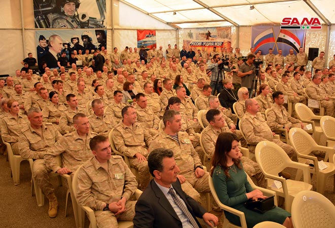In a speech, Ayoub conveyed the greetings of President Bashar al-Assad the Commander-in-Chief of Army and Armed Forces, and his wishing to all success in performing the sacred missions, thanking the leadership of Russian forces in Hmeimim base for this gesture.