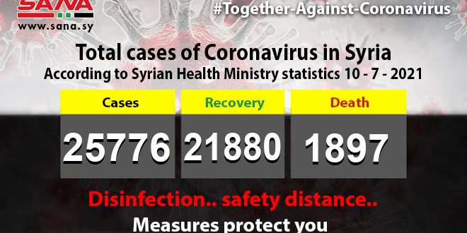 In a statement, the Ministry added that the total number of the coronavirus cases recorded in Syria has reached up to 25,776 till now, of which 21,880 have recovered, and 1,897 others have passed away.
