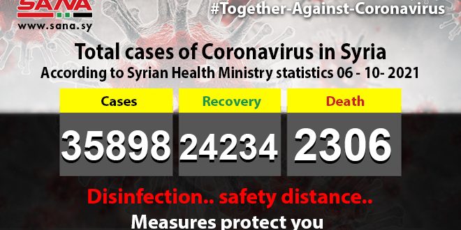The total number of the recorded coronavirus cases in Syria have reached up to 35,898 of which 24,234 have recovered, while 2,306 have passed away, the Ministry said in a statement on Wednesday.