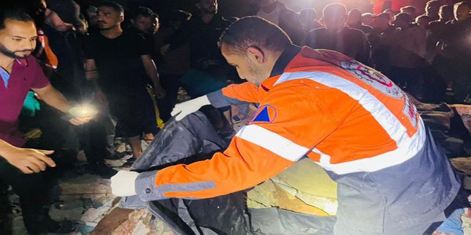 Occupied Jerusalem, SANA-Dozens of Palestinians were martyred and injured on Tuesday at Dawn in intense Israeli occupation bombing of Rafah city, south of stricken Gaza Strip