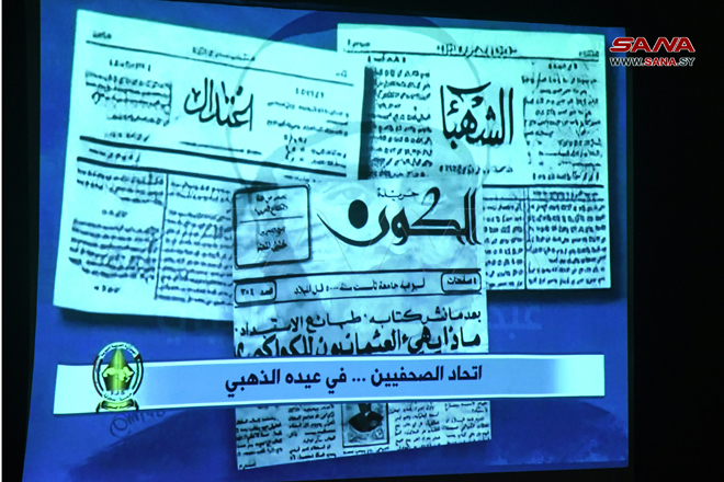 Damascus, SANA- Journalists’ Union in Syria held on Tuesday at Al-Assad Library a celebration on the occasion of its fiftieth foundation anniversary in the presence of Hussein Arnous, the prime minister several other ministers in addition to a group of journalists who were honored too.