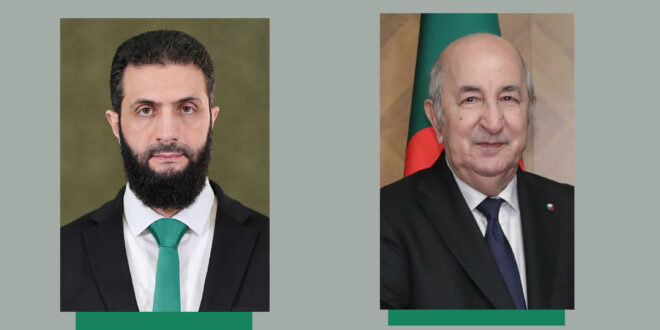 Damascus, SANA- President of the Syrian Arab Republic, Ahmad al-Sharaa received a congratulatory cable from Abdelmadjid Tebboune, President of the People’s Democratic Republic of Algeria, on the occasion of the holy month of Ramadan.