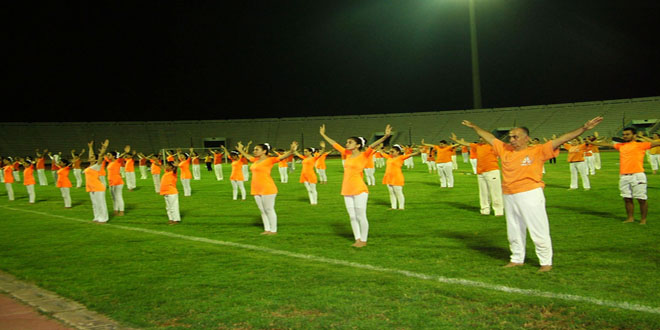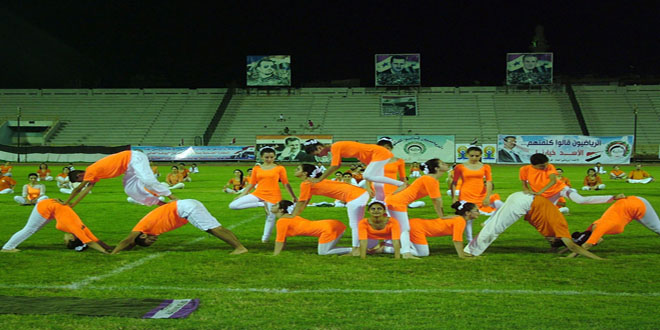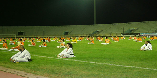 Lattakia, SANA – The Indian Embassy in Damascus organized on Tuesday an event celebrating the International Day of Yoga at Bassel al-Assad Stadium in Lattakia, in which some 350 players from different Yoga training centers in Syria took part.