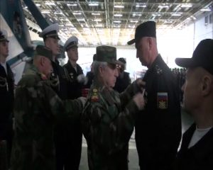 Delivering a speech on this occasion, Gen. Ayoup noted that Admiral Kuznetsov has become an integral part of the war on terrorism, noting that victory is in sight thanks to the steadfastness of Syria’s people and the sacrifices of its army under the leadership of President Bashar al-Assad and the honorable and firm stance of Russia’s president, armed forces and people.