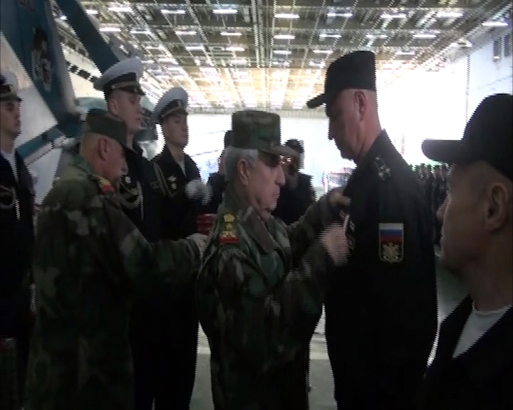 Damascus, SANA – Commissioned by President Bashar al-Assad, Chief of the General Staff of the Army and Armed Forces Gen. Ali Abdullah Ayoub visited on Friday the Russian aircraft carrier Admiral Kuznetsov upon the end of its mission off the Syrian coast.