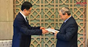 Damascus, SANA- Foreign and Expatriates Minister, Fayssal Al-Mikdad, received credentials of Ambassador Shi Hongwei, as Ambassador Extraordinary and Plenipotentiary of the People’s Republic of China to Syria, according to SANA …