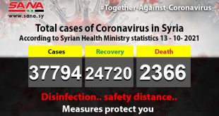 Damascus, SANA- Health Ministry announced on Wednesday that 285 new coronavirus cases were recorded in Syria, adding that 75 infected persons recovered and 8 passed away. In a statement to …