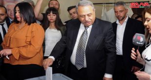 Damascus, SANA- Prime Minister Hussein Arnous cast his vote in the presidential election in the Cabinet’s polling station. In a statement to journalists following casting his vote, Arnous said that …