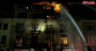 Damascus, SANA-Members of Damascus Fire Brigade extinguished on Sunday night a huge fire that broke out in a four-story residential building in al-Pakistan Street. Colonel Ali Hassan, Assistant Commander of …