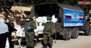 Humanitarian aid, provided by Russia, distributed to Hadar town in Quneitra countryside