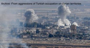 Hasaka, Raqqa ,SANA_ Turkish occupation forces and their mercenaries from terrorist organizations continued their attacks with artillery shells on the vicinity of Ayn Issa town in the countryside of Raqqa …