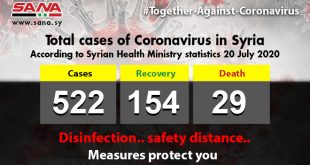 Damascus, SANA – The Health Ministry announced on Monday that 26 new Coronavirus (COVID-19) cases were registered for persons who were in close contact with infected people, and that 10 …