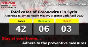 Damascus, SANA-Health Ministry announced on Tuesday that 3 new coronavirus infections were registered to raise the total number to 42 cases in Syria. The Ministry added in a statement that …