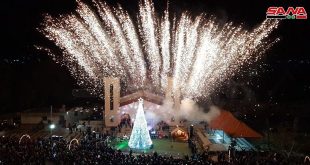 Homs, SANA-On the occasion of Christmas, al-Hwash town in Homs countryside on Tuesday lighted the Christmas tree amid popular festival at the courtyard of Mar Elias Church. Bishop Aliasha Khaisha …