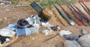 SANA’s reporter: Authorities find amounts of ammunition and weapons left behind by terrorists in Talbisa and al-Farhanyia farms in Homs northern countryside