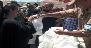 Damascus, SANA – A humanitarian aid shipment provided by Russia was distributed to needy families in al-Woroud neighborhood in Damascus. Representative of the Hmeimim-based Russian Coordination Center Col. Artyom Kazankov … Read More »