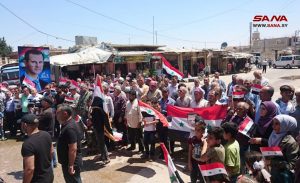 Hombres, mujeres, niños y ancianos de la localidad de Tel Rifat en el norte de Alepo protestan contra Turquía que amenaza con ocupar su localidad