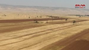 Así se ven desde el aire los campos de petróleo sirio que EEUU está saqueando y priva al pueblo sirio de los mismos. Foto captada por SANA en Español en el extremo nordeste de Siria
