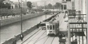 Tranvía en Damasco, la línea del barrio Puente Blanco ¨Yeser Abyad en árabe¨ , donde aparece el río Barada.
