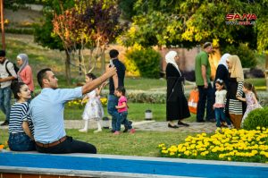 Visitantes en el parque Tishreen donde se celebran las actividades de la Feria de Flores en Damasco