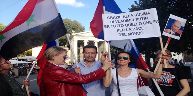 Roma, SANA-El comité ruso-italiano con la participación de la comunidad siria organizaron en Italia organizaron el sábado una marcha en Roma para apoyar la participación de Rusia en la lucha …