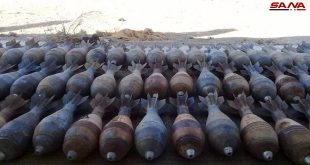 Homs-SANA Las autoridades competentes hallaron un gran almacén de artefactos explosivos, un lanzamorteros, y más de cien morteros, de los restos que dejaron los terroristas de Daesh en la localidad …