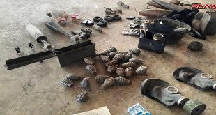 Damasco, SANA El reportero de guerra de SANA informa que las autoridades competentes han hallado hoy artefactos explosivos y minas remanentes de los terroristas durante un peinado de las localidades …