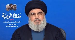 Beirut, SANA– El secretario general del Movimiento de Resistencia Islámica de El Líbano (Hezbolá), Seyed Hasan Nasrolá, pronuncia un discurso este viernes en conmemoración del aniversario del martirio de comandantes …