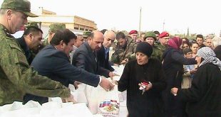Deraa-SANA En colaboración con la gobernación de Deraa, se distribuyó ayuda humanitaria ofrecida por Rusia a los familiares de mártires y heridos del Ejército sirio, así como a los …