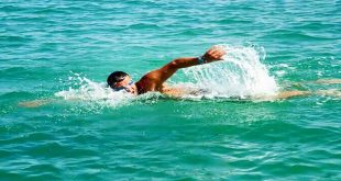 Tartous, SANA El nadador del Club de al-Yaish “ejército”, Azzam Dhaher, logró nadar desde el malecón del este en Latakia hasta la costa de al-Rimal al-Dhahabiya “arenas doradas” en Tartous …
