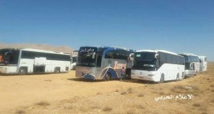 Damasco Campo-SANA Cientos de terroristas de Daesh fueron trasladados con sus familiares de la zona de los secanos de Qara en Qalamon occidental en Damasco Campo hacia la zona …