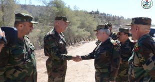 Hama, SANA Atendiendo instrucciones del presidente, Bashar al Assad, el jefe del Estado Mayor del Ejército y las Fuerzas Armadas de Siria, general de división Ali Abdallah Ayoub, acompañado por …