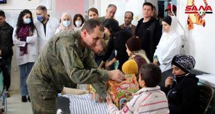 Latakia, 04 ene (SANA) El Centro de Coordinación Ruso en la base de Hmeimim entregó este martes medicamentos y obsequios a los niños en los Departamentos de Pediatría General y …