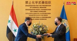 La Haya, 19 oct (SANA) El embajador de la República Árabe Siria ante la Organización para la Prohibición de las Armas Químicas (OPAQ), Embajador Milad Attiah, presentó hoy sus credenciales …
