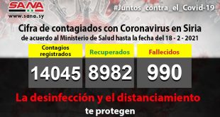 Damasco, SANA El Ministerio de Salud de Siria anunció 44 nuevos casos con Covid-19 para un total de 15,045. La nota precisó que 79 contagiados se recuperaron de la enfermedad …