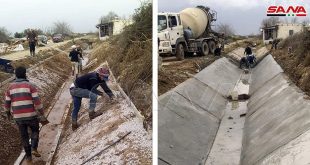 Homs, SANA La Dirección de Recursos Hídricos de Homs inició a principios del año en curso, obras de rehabilitación de los dos canales de riego que sufrieron daños por el …